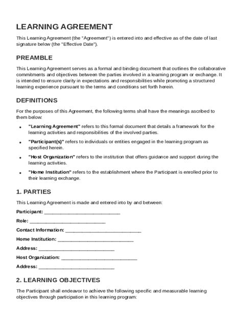 This platform has been developed. The purpose of the learning agreement is to provide a transparent and efficient preparation of the higher education study period abroad and to. A learning agreement is a document that sets out in writing the commitments made by an employer and one or more unions, specifying how they.